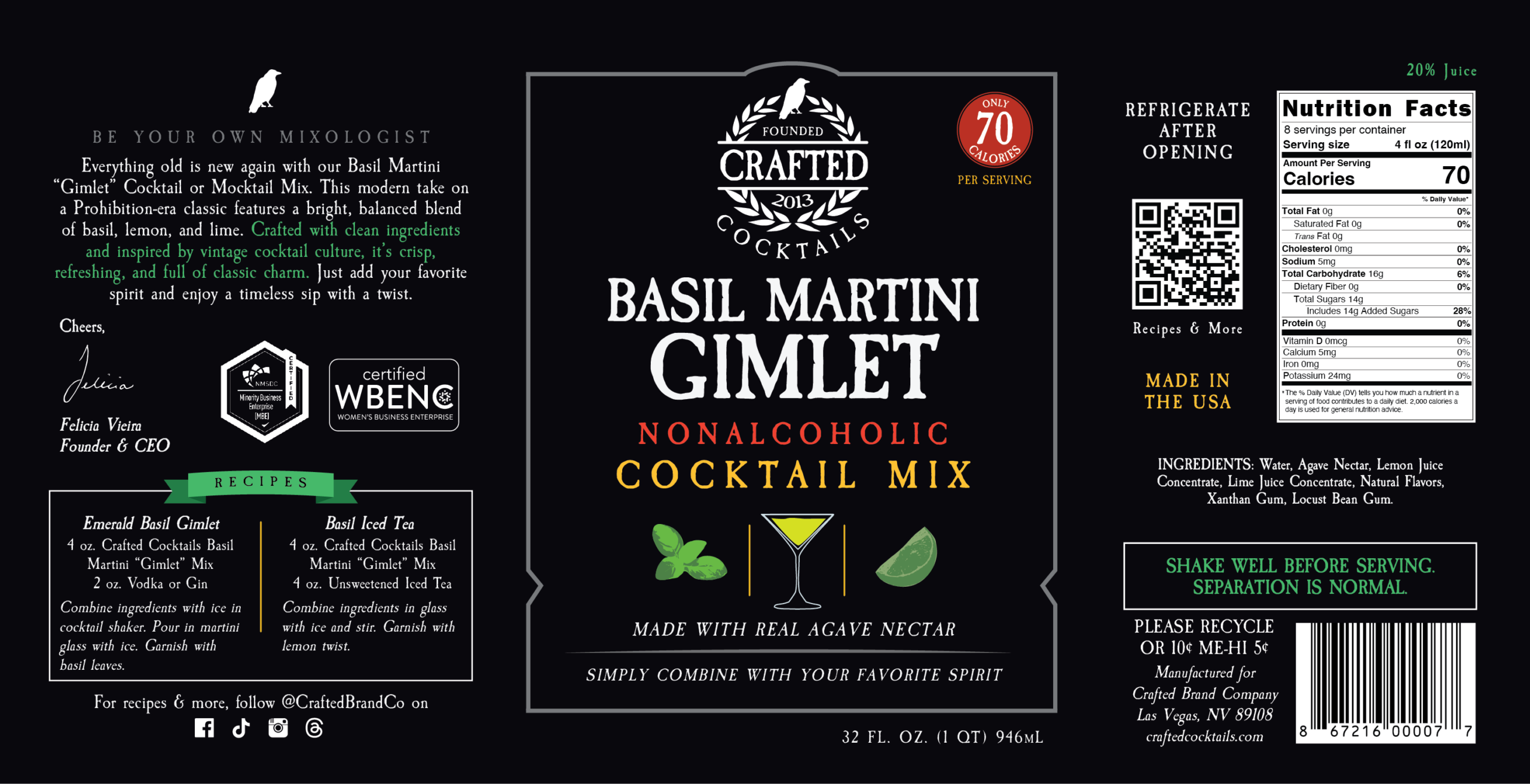 Everything old is new again with our Basil Martini “Gimlet” Cocktail or Mocktail Mix. This modern take on a Prohibition-era classic features a bright, balanced blend of basil, lemon, and lime. Crafted with clean ingredients and inspired by vintage cocktail culture, it’s crisp, refreshing, and full of classic charm. Just add your favorite spirit and enjoy a timeless sip with a twist.