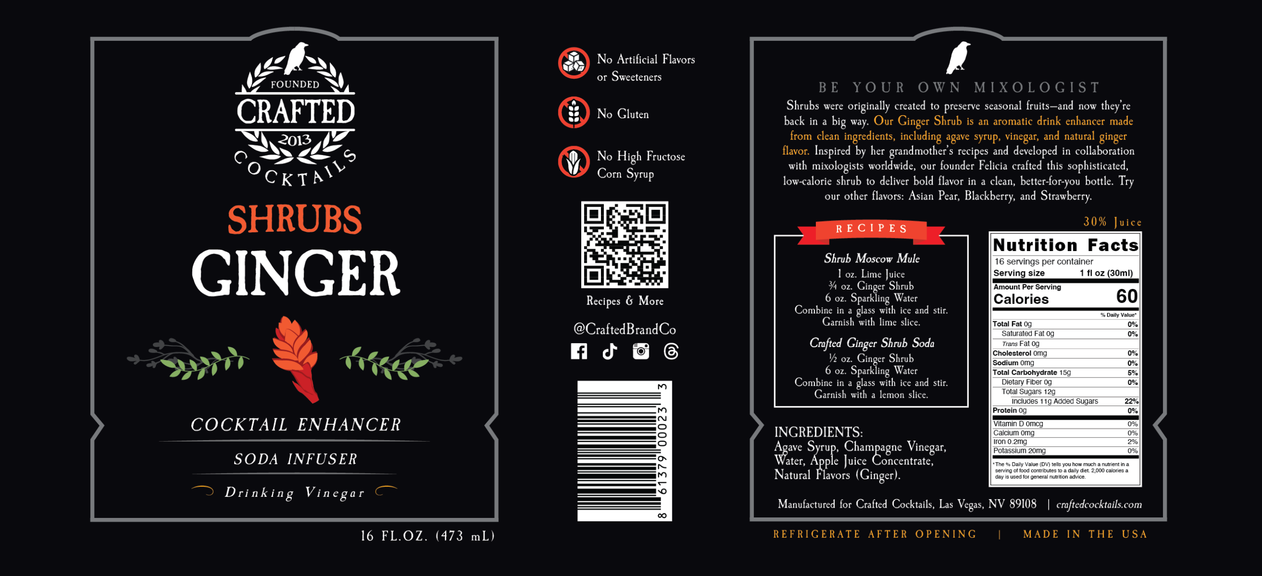 INGREDIENTS: Agave Syrup, Champagne Vinegar, Water, Apple Juice Concentrate, Natural Flavors (Ginger).